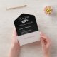 Mit unserer modernen Schwarz-Weiß-Hochzeitseinladung stärken Sie Ihre Hochzeit. Es verfügt über modernen Schriftart, glänzende Hochzeitsringe und eine abreißende RSVP-Karte, die Stil und Komfort verkörpert. Wichtige Merkmale: Moderne Ringe: Kleine Hochzeitsringe symbolisieren Ihre ewige Liebe. All-in-One: Es werden keine separaten RSVP-Karten benötigt, alles in einem. Premium Qualität: Luxuriöser Cardstock mit einem eleganten Design. Anpassbar: Personalisieren Sie Ihre Daten. Einfach zu senden: Einfache Montage und Versand. Machen Sie Ihre Hochzeit von Anfang bis Ende unvergesslich. Sehen Sie sich unsere Kollektion für eine Black & White Affair Themed Wedding an!