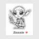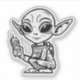 Auf diesem Aufkleber befindet sich eine niedliche Schwarz-Weiß-Alien mit spitzen Ohren, gekrönt, mit einem Retro-Stil-Laufband. Mit einem lustigen, Cartoon-ähnlichen Design machen die großen Augen und das neugierige Aussehen des Außerirdischen es perfekt, um Laptops, Notebooks oder Wasserflaschen zu dekorieren. Ideal für Fans von Science-Fiction, Weltraum-Abenteuern und sonderbaren Charakteren, bringt dieser Aufkleber ein weltweites Ambiente auf jede Oberfläche.