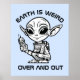 Dieses spielerische Poster enthält eine schwarz-weiße Alien mit spitzen Ohren, die sich wie aus der Ferne herabkauert. Die Alien, mit einem eigenartigen Ausdruck, enthält ein kleines, Retro-Look Walkie-Talkie-Gerät. Der Text lautet: "Die Erde ist merkwürdig, Ein und Aus" und erfasst die leichteste Sicht der Alien auf unsere Welt. Ideal für Sci-Fi-Fans oder für alle, die eine sonderbare, intergalaktische Drehung Liebe haben.