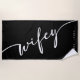 Dieses elegante, schwarz-weiße Strandtuch "Wifey" zeigt ein wunderschönes, charakteristisches Drehbuch, personalisiert mit seinem Nachnamen. Es ist das perfekte Geschenk für Neuvermählte, die ihren Strandurlaub mit einer Touch von Romantik und Stil bereichern. Ideal, um sich unter der Sonne zu entspannen oder ihr neues Kapitel gemeinsam zu feiern, ist dieses Handtuch ein gedankenvoller Sake, den sie in jedem Urlaub schätzen werden!