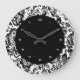 Schwarz-Weiß-Barock-Blume-Muster Große Wanduhr