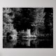 Original Schwarz-Weiß-Foto eines Baumstumpfes mit umliegenden Bäumen, das im ruhigen Wasser eines Teiches reflektiert wird, das auf einem 16x20 Plakatdruck gedruckt ist. Ein BohippianFinch Originalfoto.