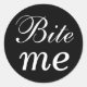Schwarz-Weiß-Bite-Me-Aufkleber Runder Aufkleber