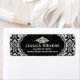 Schwarz-Weiß-Paisley-Damast-Muster mit Abschluss-Hut in Imitaten weiße Diamanten. Eleganter Abschluss dieses Label. Skinny-Version. Wenn Sie Hilfe bei der Anpassung eines meiner Designs benötigen, kontaktieren Sie ArtOnWear Designer. Kostenlose Textformatierung mit Live-Hilfe auf Anfrage.