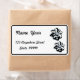 Eine schwarz-weiße Blume mit hohem Kontrast auf einem Adressetikett, die Sie ganz einfach mit Ihren eigenen Informationen anpassen können.