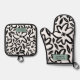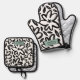 Schwarz-Weiß-Blume - Moderne Bezeichnung Ofenhandschuh & Topflappen-Set