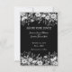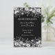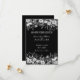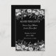 Eine lustige schwarz-weiße Hochzeit Speichern Sie das Datum auf einem schwarzen Hintergrund und hellgrauen Text. Eine schwarz-weiße Blumengrenze umschließt den oberen und unteren Teil dieser Einladung. Dies ist Teil einer Suite mit passenden Produkten.