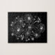 Blumendesign. Marigold, Zinnia, Dissy. Weiße Blume auf schwarzem Hintergrund