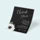 Billig günstige 4,5" x 5,6" Flyer mit leichtem Papiergewicht sind in schicken weißen Schriftzeichen mit schwarz-weißer Blume auf schwarzem Hintergrund gehalten. Diese Orte, in denen die Dankeschön-Notizen zu finden sind, sind perfekt, um die Teller beim Hochzeitsessen oder Hochzeitsempfang auf die Probe zu setzen. PASSENDE Artikel in unserer Sammlung.