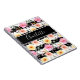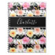 Helles Rosa und goldgelbes Vintages Blumenmuster mit Ihrem benutzerdefinierten Text oder Namen in Script Black and White Striping Modern Notebook.