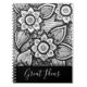 Schwarz-Weiß-Boho chic Blumenmuster ist elegant und von Mandalasen inspiriert. Aktualisieren Sie die Textvorlage einfach auf Ihren Namen oder Journaltitel. Erhältlich in vielen anderen Stilen und Farbkombinationen.
