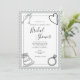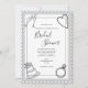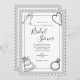 Moderne Brautdusche im schwarz-weißen Design mit handgezeichneter Hochzeitsgrafik in jeder Ecke. Perfekt gerahmt mit einer weißen Kante mit schwarzer Kontur. Die Koordination von Schriftart trägt zur Schönheit dieses Designs bei.