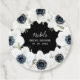 Elegante Schwarz-Weiß-Anemone-Blume und Blätter umgeben diese runden Gefälligkeitsmarken mit ihren Details in schicker Schrift. PASSENDE Artikel in unserer Sammlung.