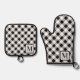 Schwarz-weiß Buffalo Kariert Gingham Monogram Nied Ofenhandschuh & Topflappen-Set