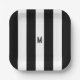 Schwarz-Weiß-Cabana-Streifen Minimal-Monogramm Pappteller