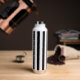 Die perfekte Flasche, um Ihre Getränke cool oder kaffee heiß behalten... schwarz-weiße Cabana Streifen mit minimalem Monogramm. Personalisieren Sie mit Ihrem eigenen Initial. Matching Accessoires in unserer Black & White Cabana Stripe Kollektion.