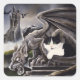 Schwarz-weiß Cat Gargoyle Quadratischer Aufkleber