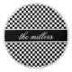 Ein Schachbrettmuster in diesem eleganten Design ist der Hintergrund für ein schwarz-weißes Band, das Ihren Namen, Ihr Monogramm oder einen anderen Text enthält. Suchen Sie ID148 um weitere Produkte mit diesem Design zu sehen.