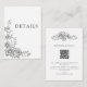 Schwarz Weiß Chic Botanischer QR-Code Hochzeitsdet Begleitkarte