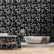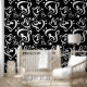 Die Tapete ist mit einem schwarz-weißen Stuhlschnitt und einem Basskernmuster versehen. Ideal für einen musikalischen Raum!
