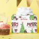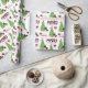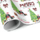 Das wiederholte Muster auf diesem niedlichen Weihnachtsverpackungspapier ist ein Bild einer bezaubernden schwarz-weißen Parti-Farbe Cocker Spaniel, die eine Weihnachtsmannmütze und einen roten Bogen trägt. Der Hund sitzt neben einem geschmückten Weihnachtsbaum unter hellen Geschenkpackungen. Ein Stiervogel landet auf dem Baum dahinter. Stilisierter, roter und schwarzer Büffel karierter Text sagt MERRY CHRISTMAS", und Ihre eigene Unterschrift ist in zwei Bereichen für Sie individuell.