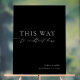 Ein modernes minimalistisches Hochzeitszeichen mit klassischem schwarzen Serifentext mit handgeschriebenem Schriftzeichen und einem schlichten Richtungspfeil. Dieses gepflegte Schwarz-Weiß-Design eignet sich perfekt für Hochzeiten, schicke Empfänge oder verfeinerte Cocktailstunden. Anpassen Sie einfach mit Namen und Datum an Ihr Ereignis. Passt wunderschön mit dem vollen Paket der Koordination der Beschilderung aus der Sammlung "Elena" zusammen. Sehen Sie sich den Sammellink auf dieser Seite an, um alle passenden Elemente in diesem Design anzuzeigen. ・ Mockups, die mit Midtravel AI erstellt wurden.