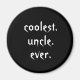 Dieser Magnet zeichnet sich durch ein Schwarz-Weiß-Textdesign aus: coolster Onkel aller Zeiten. Um die Hintergrundfarbe zu ändern, klicken Sie rechts auf Anpassen.