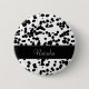 Ein gepunktetes Schwarz-Weiß-Muster dalmatinischer Hundefelle. Ein schwarzes Banner mit weißen Stichen und Text läuft über. Der Text kann angepasst werden.