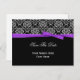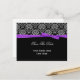 Schwarz-weiß Damask Lila Bow Ribbon Save the Date Ankündigungspostkarte