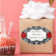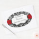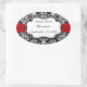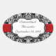 Schwarz/Weiß Damask Rotes Band Ovaler Aufkleber