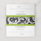 Vintage Schwarz-Weiß-Damast-Muster mit Apple Green Trim Hochzeitseinladungen. Ideal für Rokoko Barock, mittelalterliche Renaissance, Art Deco Art Nouveau, Roaring 20s Gatsby, Viktorianische Hochzeiten oder elegante Bauernhäuser Hochzeiten Themes Orte.