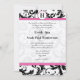 Schwarz-Weiß-Damast-Blumenrosa-Schmiedekunst Einladung