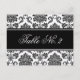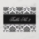 Schwarz-Weiß-Damast-Hochzeitsstimmung in der Tisch Postkarte