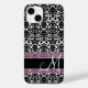 Ein klassisches elegantes Design für Ihr Handy. Schwarz-Weiß-Damast-Muster mit einem zarten rosa und schwarzen Monogramm.