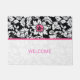 Elegantes schwarz-weißes Damast-Muster mit rosa Streifen und Blume. Maßgeschneiderte Türmatte