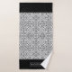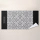 Schwarz-Weiß-Damast-Muster und gekalkte Ränder Bath Handtuch Set. Das Badetuch weist ein elegantes schwarz-weißes Damast-Muster auf, und die kurzen Seiten sind mit schwarzen Streifen mit geschliffenen Kanten versehen. Es gibt auch einen Rahmen mit Ihrem Familiennamen. Das Handtuch zeigt einen geschossenen Rand, während das Waschlappen schwarz in der Mitte ist, mit einem Damast-Rahmen und dem Monogramm. Sie können es mit Ihrem Familiennamen und Monogramm personalisieren.