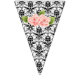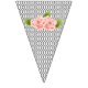 Dies ist ein hübsches Set von bunten Fahnen, die aus schwarz-weißen Designs mit einigen rosa Blume bestehen. Diese Fahnen würden für jedes Party, von Hochzeiten bis zu Babyduschen, gut aussehen.