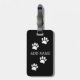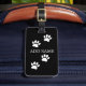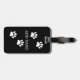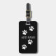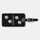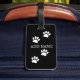 Cartoon Hundepaw druckt in Weiß auf schwarzem Hintergrund. Benutzerdefinierte Gepäckanhänger. Bearbeiten Sie den Namen, um die Geschenkidee für Hundefreunde anzupassen.