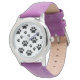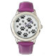 Diese Uhr zeigt Pfotendrucke in schwarz auf weißem Hintergrund. Verschiedene Uhrenstile und -farben zur Auswahl. Benutzen Sie einfach die Buttons rechts neben dem Design, um die andere Option zu sehen!
