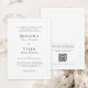 Dieses elegante, geschmackvoll-schwarz-weiße Hochzeitsangebot ist sauber und klassisch und bietet eine moderne Einfachheit und ein komfortables All-in-One-Format, um auf Ihr Einladungsbudget retten. Dieses hübsche Design zeichnet sich durch eine dünne, silberfarbene Grenze aus, die Ihren Text umgibt, mit einer Mischung aus zeitlosen Serifen und eleganten Schriftzeichen. Sie können die Textplatzierung an Ihren Anzug anpassen, entfernen oder anpassen. Der beliebte weiße Hintergrund trägt zur klaren Einfachheit dieses Designs bei. Es gibt viel Platz in Weiß, um die Einladung lesbar und für das Auge attraktiv zu machen. Die Rückseite der Einladung hat eine bequeme Vorlage, um Details für Ihre Gäste, UAWG und einen QR-Code, um direkt mit Ihrer Hochzeitswebsite zu verbinden. Es bietet eine effiziente und kostengünstige Möglichkeit, UAWG Antworten zu erhalten und Ihren Gästen alle Informationen zu geben, die sie für Ihre Hochzeit benötigen.