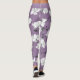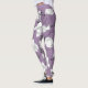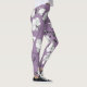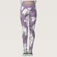 Moderne Leggings mit einem eleganten Blumenmuster mit schönen, zarten, schwarz-weiß stilisierten Orchideen auf lila Hintergrund; der Streifen auf dem Bund ist schlicht lila.