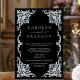 Schwarz-Weiß-elegante Verzierte Hochzeitseinladung. Diese wunderbare Einladung ist verziert und raffiniert. Ideal für Ihre Veranstaltung! Ändern Sie die Hintergrundfarbe in eine beliebige Farbe im Entwurfstool.