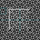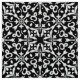 Elegantes Stoffdesign mit einem nahtlosen Muster aus weißen Ornamenten auf schwarzem Hintergrund.