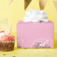 Passen Sie die moderne Handschrift an, um Ihr eigenes mädchenhaftes Party zu kreieren. Drehen Sie sowohl den Namen als auch das Monogramm um 45 Grad für ein anderes Aussehen des Musters. Fügen Sie ein Monogramm Initial und Name hinzu, um eine Anfangskombination mit extravaganter Klassik zu erstellen. Sie können die rosa, schwarz und weiß Farben in diesem Design anpassen.