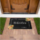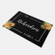 Schwarz & Weiß Fall Foliage Doormat: Herzlich willkommen in diesem minimalistisch personalisierten Doormat mit Ihrem Familiennamen oder einer individuellen Botschaft in einem eleganten, weißen Schriftzeichen. Die Personalisierung ist schön gerahmt in einem schlichten Set mit weißen Rahmen vor einem fett schwarzen Hintergrund. Cluster von Aquarellfarben in warmen Herbsttönen, wie gebrannte Orange, goldgelb und reich rot, überlappen den Rahmen in den oberen rechten und unteren links Ecken elegant und fügen eine subtile, aber einladende saisonale Touch hinzu. Dieses moderne Herbsttor verbindet saubere Linien und die Schönheit der Natur. Freuen Sie sich auf eine stilvolle und raffinierte Begrüßung zu Ihrem Zuhause.