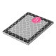 Ein schwarz-weißes Quarrefolienmuster hat einen rosafarbenen Single Quarrefolien Monogramm Rahmen, um es mit Ihrem ersten Bild anzupassen.