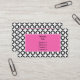 Schwarz-Weiß-Vierblättermuster. Schwarzes Vierblättermuster auf Weiß. In der Mitte befindet sich ein hellrosa Rechteck, in dem Sie Ihren Text hinzufügen können.