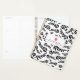 Ein Lehrer-Planer mit einem Skizzenbuch inspirierte Schwarz-Weiß-Blattdesign vorne und hinten. Vorderseite zeigt benutzerdefinierten Text unter der Illustration eines heißen rosa Apfels.