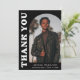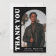 Stilvolle und trendige Abschluss Dankeschön-Karte mit dem Foto des Absolventen auf der Vorderseite mit einem Offsetbogen Foto Rahmen. "Danke" wird in fett weißem Retrobuchstaben auf schwarzem Hintergrund angezeigt. Personalisieren Sie die Vorderseite des Fotos Abschluss Dankeschön Karte durch Hinzufügen des Graduiertennamens, Schule und Abschluss Jahr. Die Karte kehrt zurück, um Ihre getippte oder handgeschriebene Nachricht anzuzeigen. Der Black Abschluss Dankeschön ist perfekt für Absolventen der Highschool und der Uni.