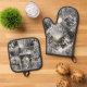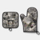 Schwarz-Weiß-Foto Collage Gold Monogramm Ofenhandschuh & Topflappen-Set
